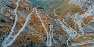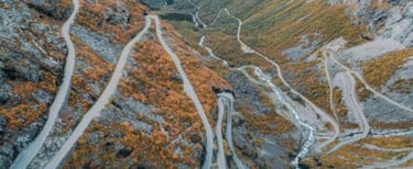 Trollstigen significa la escalera del troll y si decides realizarla en moto te darás cuenta de por qué. Se trata de un empinado tramo de montaña que forma parte de la carretera nacional noruega 63. La Nacional 63 conecta las ciudades de Åndalsnes y Valldal en la comarca de Romsdal. El paso de Trollstigen se encuentra a unos 20 kilómetros al sur de Åndalsnes, en la provincia de Møre og Romsdal.