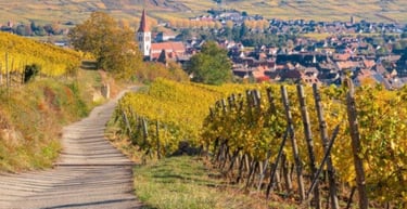 Al final del bosque llegarás a un paisaje encantador y abierto de la región vinícola de Alsacia, en Francia, donde podrás circular a un ritmo más relajado. Si te gusta la historia y quieres hacer alguna parada, a lo largo de tu viaje vas a poder visitar desde ruinas romanas hasta las murallas fortificadas de Rothenburg ob der Tauber. Verás que la región parece sacada de un cuento de hadas.